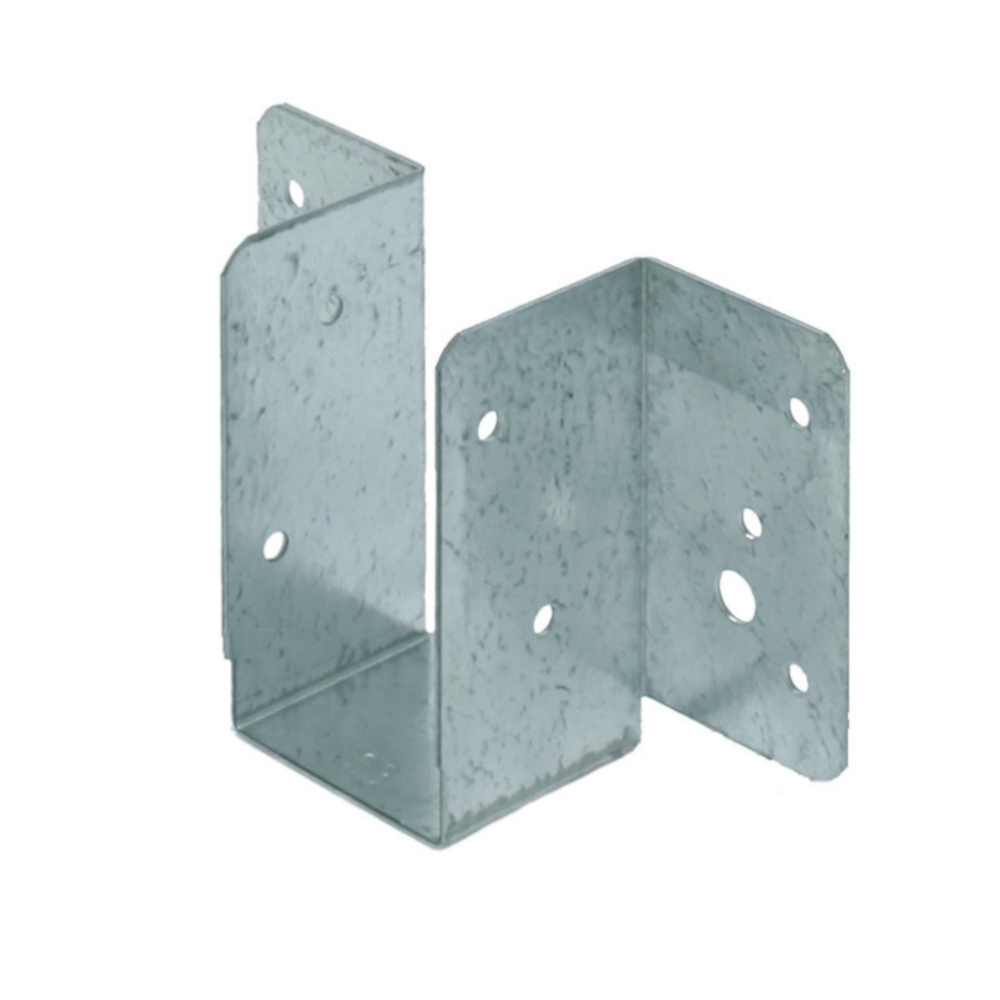Een regeldrager of balkdrager met nagel- en boutgaten voor bevestigingen op muren of balken.