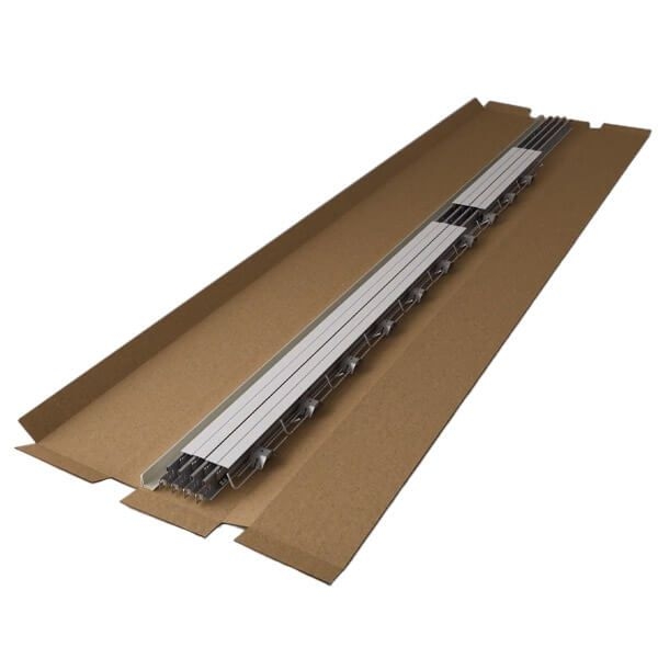 Rockfon installatiekit is een pak van 2,4 meter lang met alle profielen en toebehoren die noodzakelijk zijn om een plafond van +- 8,64 m² Rockfon A24 60 x 60 x 20 cm of 120 x 60 x 20 cm uit te voeren
