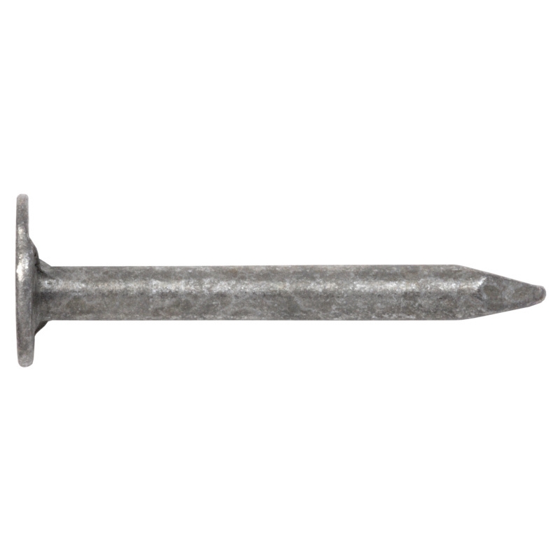Een thermisch verzinkte roofing nagel met brede kop, ideaal om roofing of shingles op constructiewerk te bevestigen.