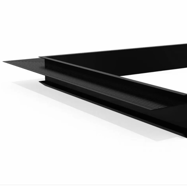 Een gemoffelde binnenhoek in RAL 9005 aluminium (afmeting 60 x 64 mm) en lengte 50 x 50 cm.