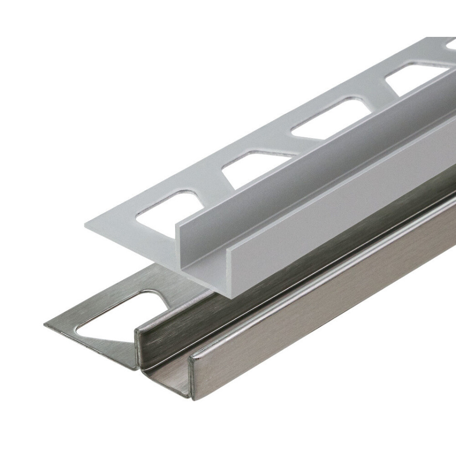 Schlüter-DECO-SG is een decoratief profiel dat fungeert als voeguitsparing in tegelbekledingen. Het creëert een schaduwvoeg van 12 mm of 15 mm breed. Deze voeg is bijzonder geschikt voor het plaatsen en bevestigen van glaselementen in zowel de vloer als de wand.