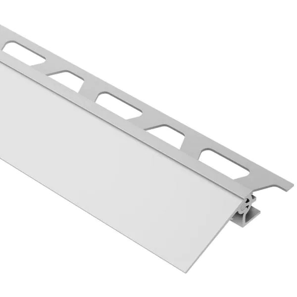 Schlüter®-RENO-V is een profiel met een variabel overgangsvlak voor het traploos verbinden van vloerbekledingen van verschillende hoogte, bijv. ter hoogte van de overgang van tegels op tapijt. Daarnaast beschermt het ook de aangrenzende randen van de bekleding.