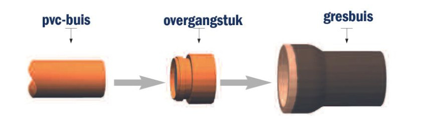 Een verval om in de mof van een Gresbuis te schuiven en over te gaan naar een conforme PVC-buis aansluiting