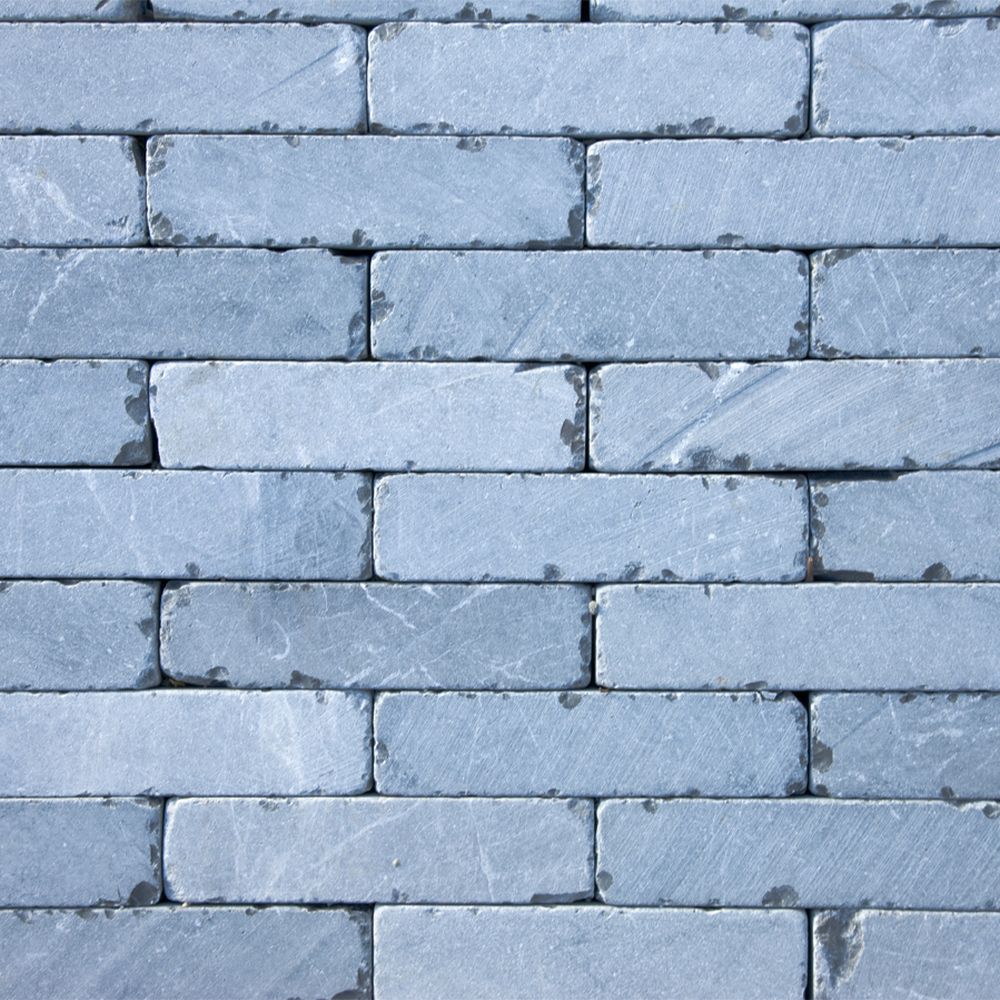 De Vietnamees Blauwsteen waalformaat getrommeld 20x5x5 is een onverslijtbare blauwgrijze arduinen klinker voor terras en oprit.