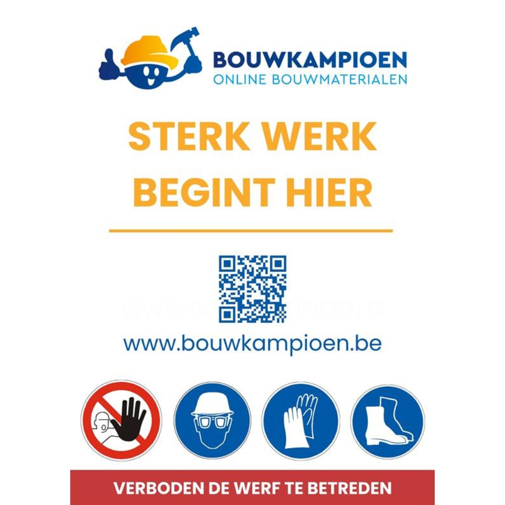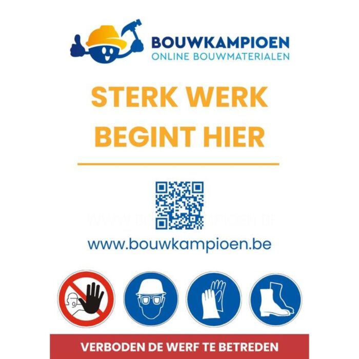 Het werfbord 50 x 70 cm is een klassieker voor elke bouwplaats of projectlocatie. Het bord is vervaardigd uit stevig en toch licht polypropyleen kanaalplaat, wat zorgt voor een uitstekende balans tussen stevigheid en duurzaamheid.